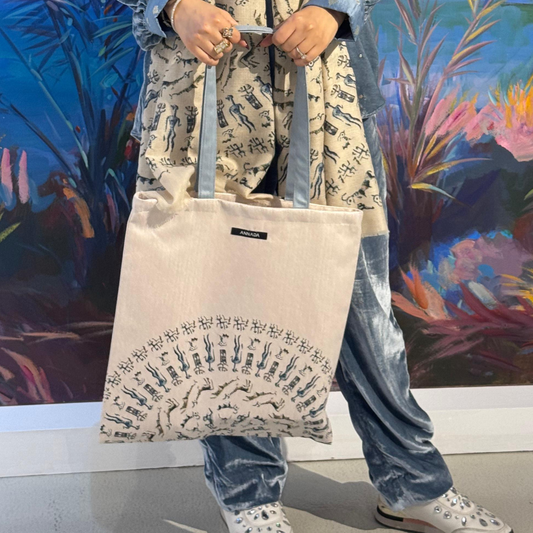 يتمثل مفهوم Annada On The Go Line في تقديم منتجات مصممة خصيصًا لتناسب حياة المرأة العصرية التي لا تزال ترغب في حمل لمسة فنية في يومها الحافل. تحتوي حقائب اليد الرائعة لدينا على 4 أعمال فنية مختلفة مطبوعة على مادة القماش بمقابض بطول الكتف. تحتوي كل حقيبة كبيرة على شعار Annada مخيط في الجانب الأمامي وتوقيع الفنان في الزاوية.