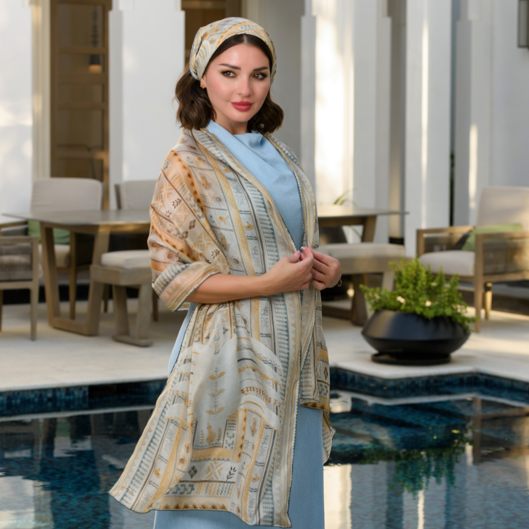 While the long scarf in its solid strong Cotton Silk blend is ideal for any season. A luxurious artistic feel to be added to your outfit with the promise of staying in place!