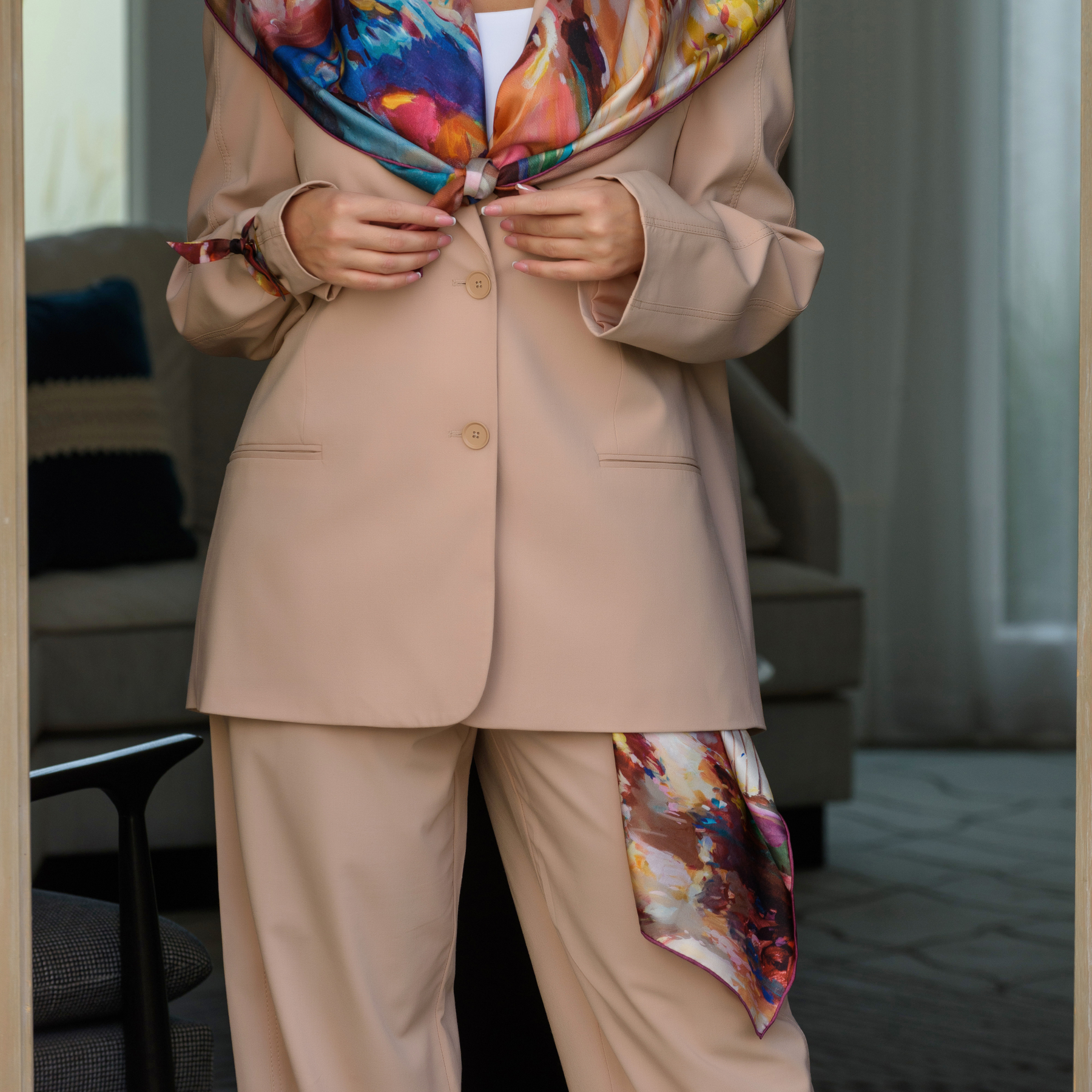 The Annada Mini Scarf brings further flexibility and creativity into styling for a small silk piece. From the classic neckerchief, it evolves into bag wraps, bracelets, head and hat bands or even a camera strap. This artful piece also makes the ideal pocket squares for the dapper man who wants to make a statement.